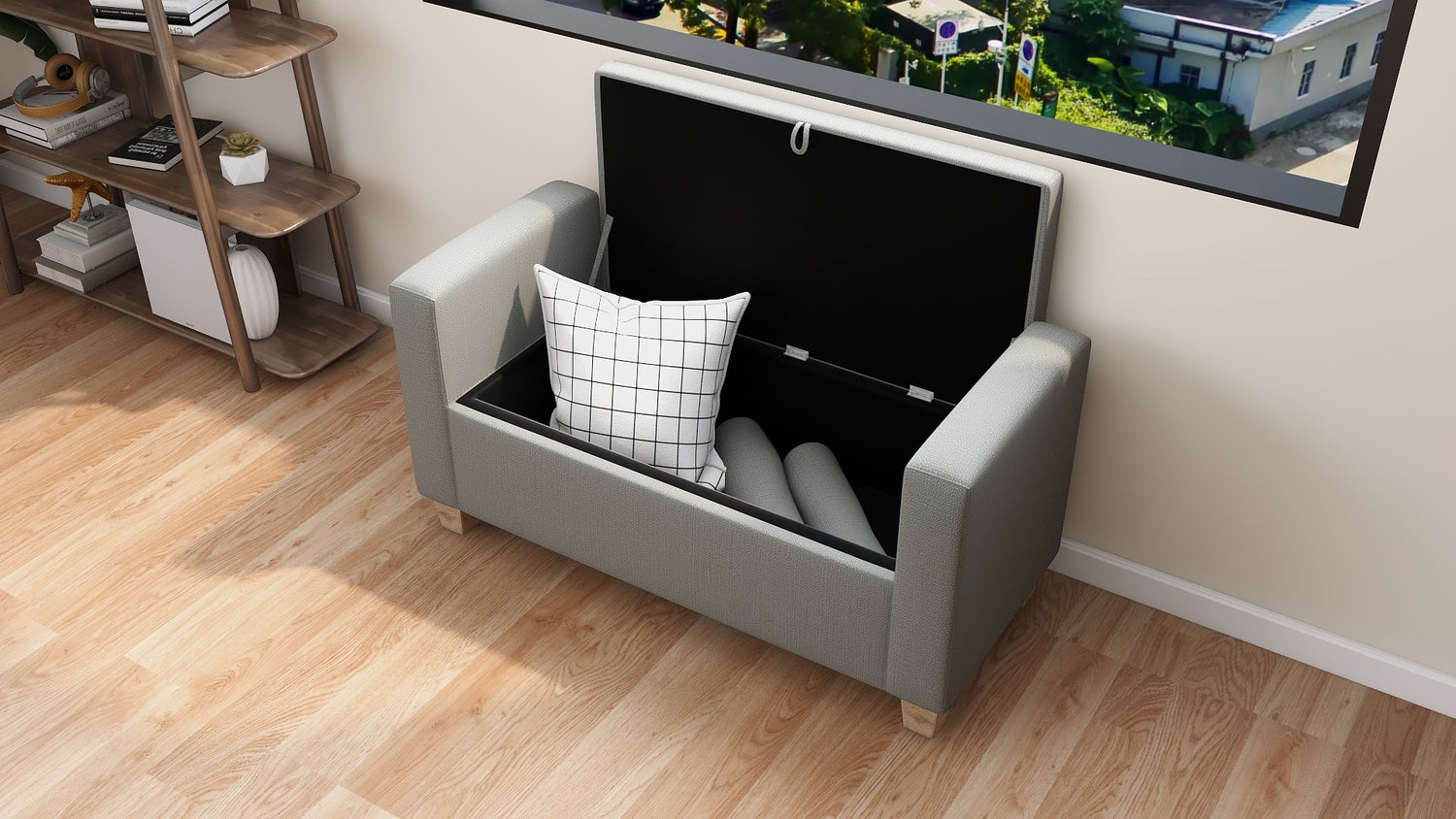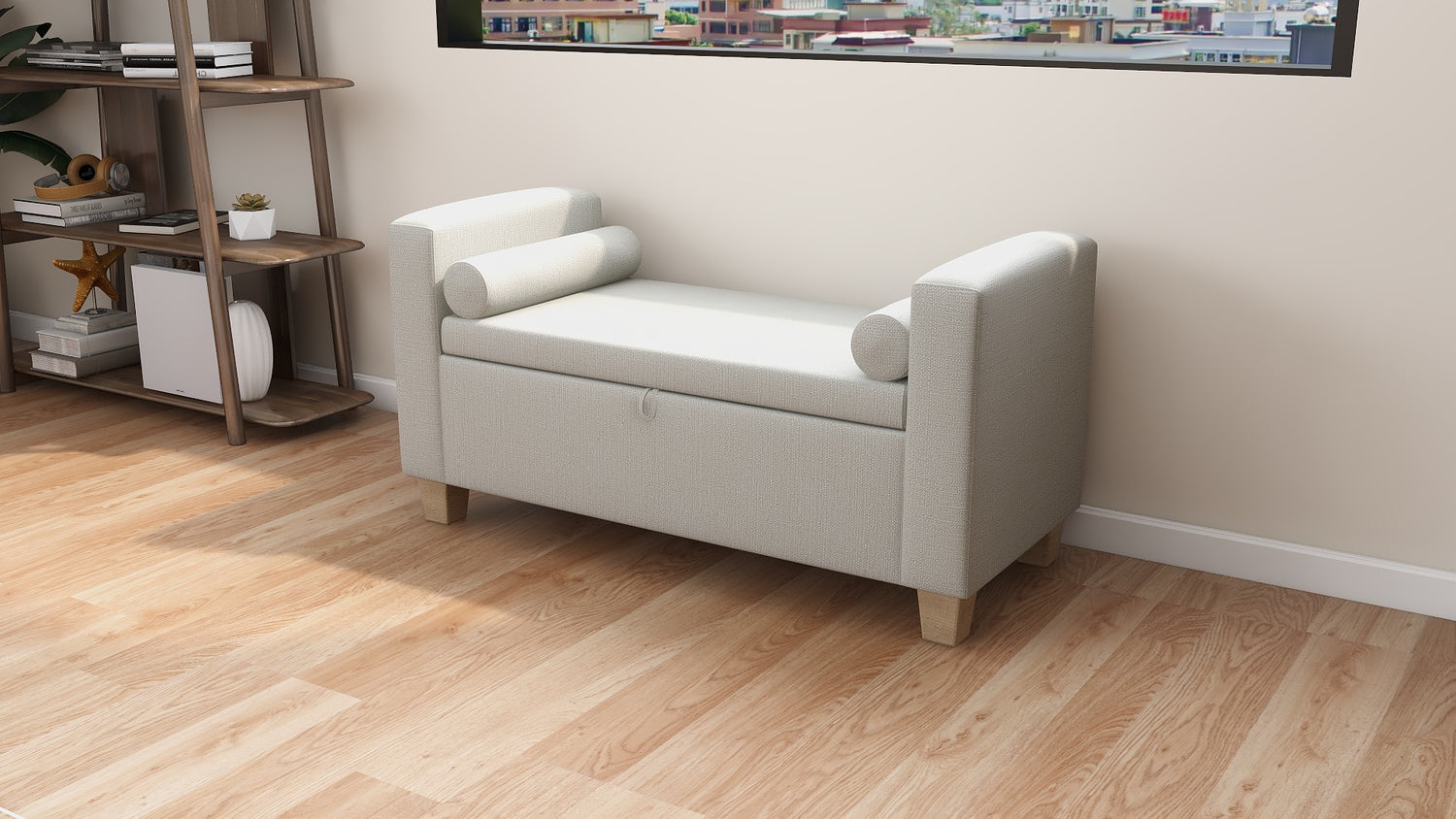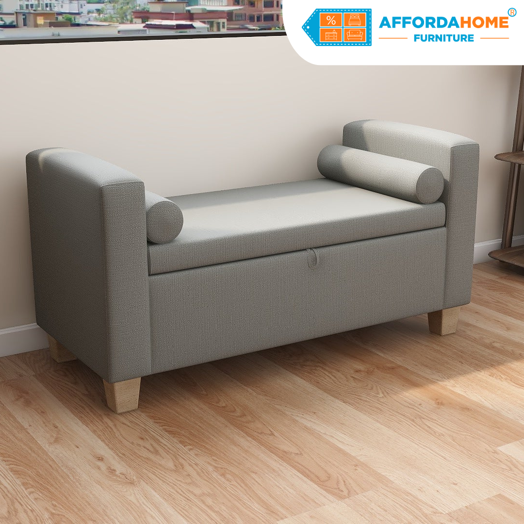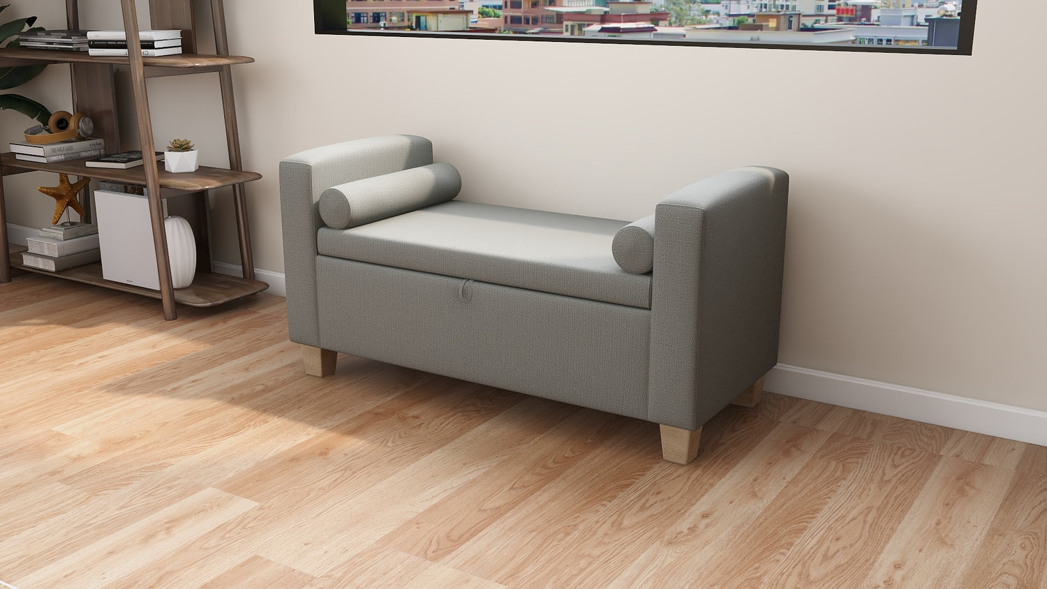 CHARM Fabric Bench with Storage - Dark Gray Fabric is backordered and will ship as soon as it is back in stock.
