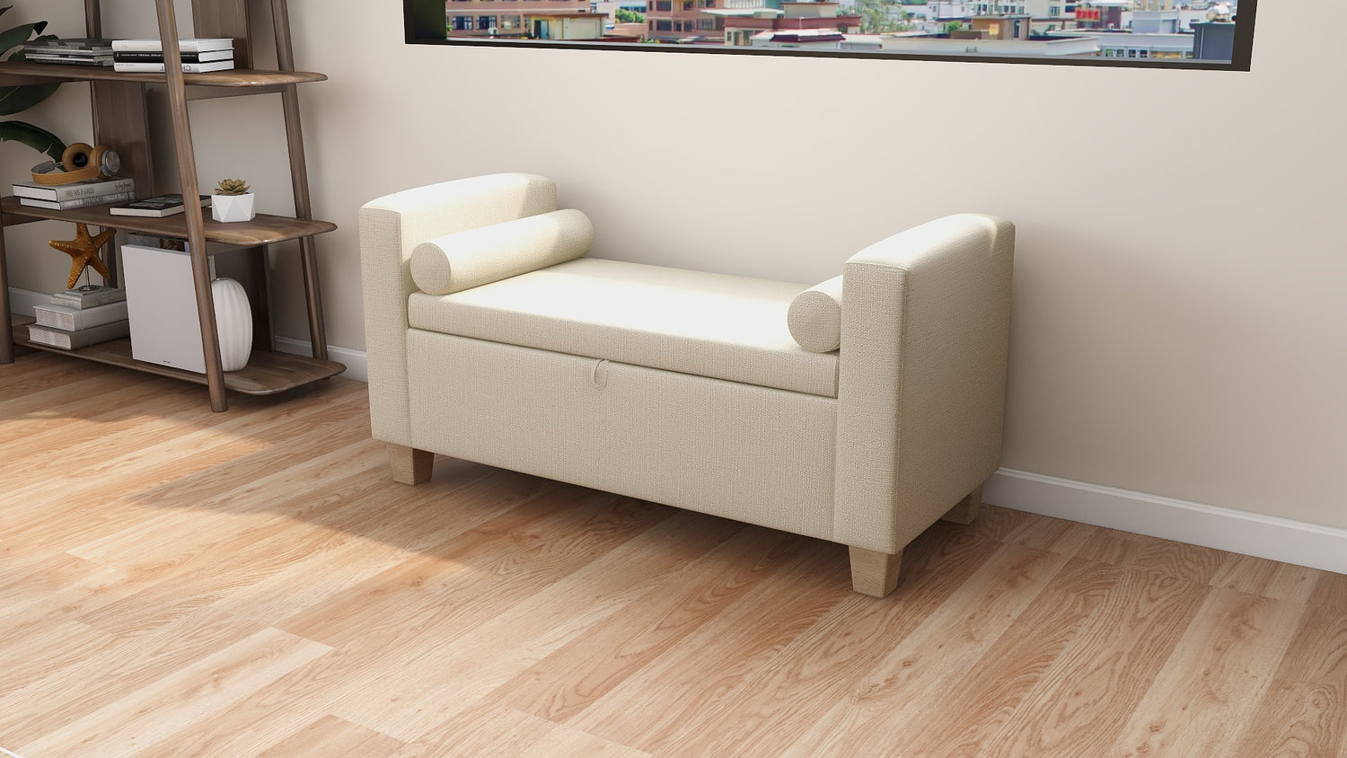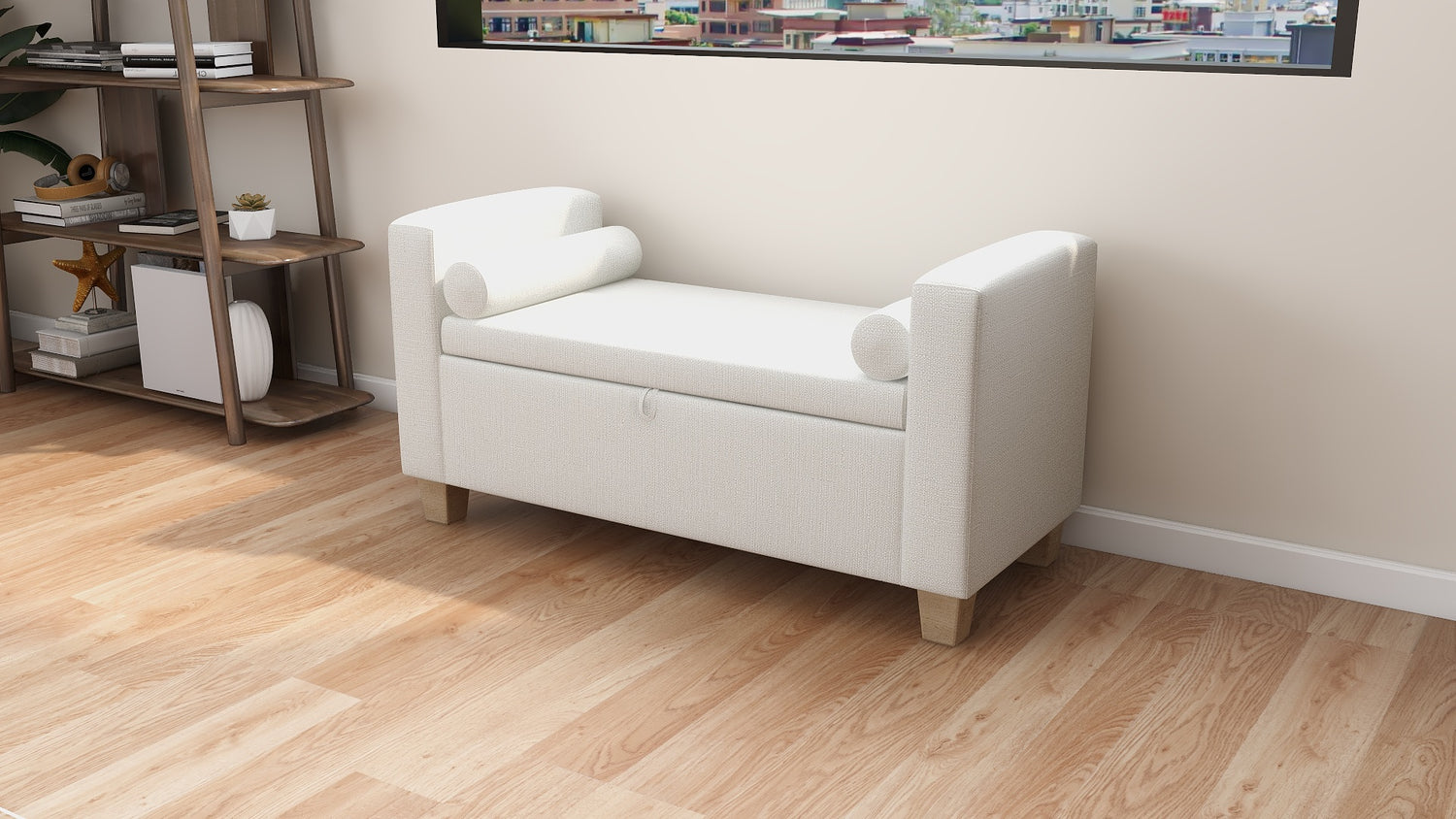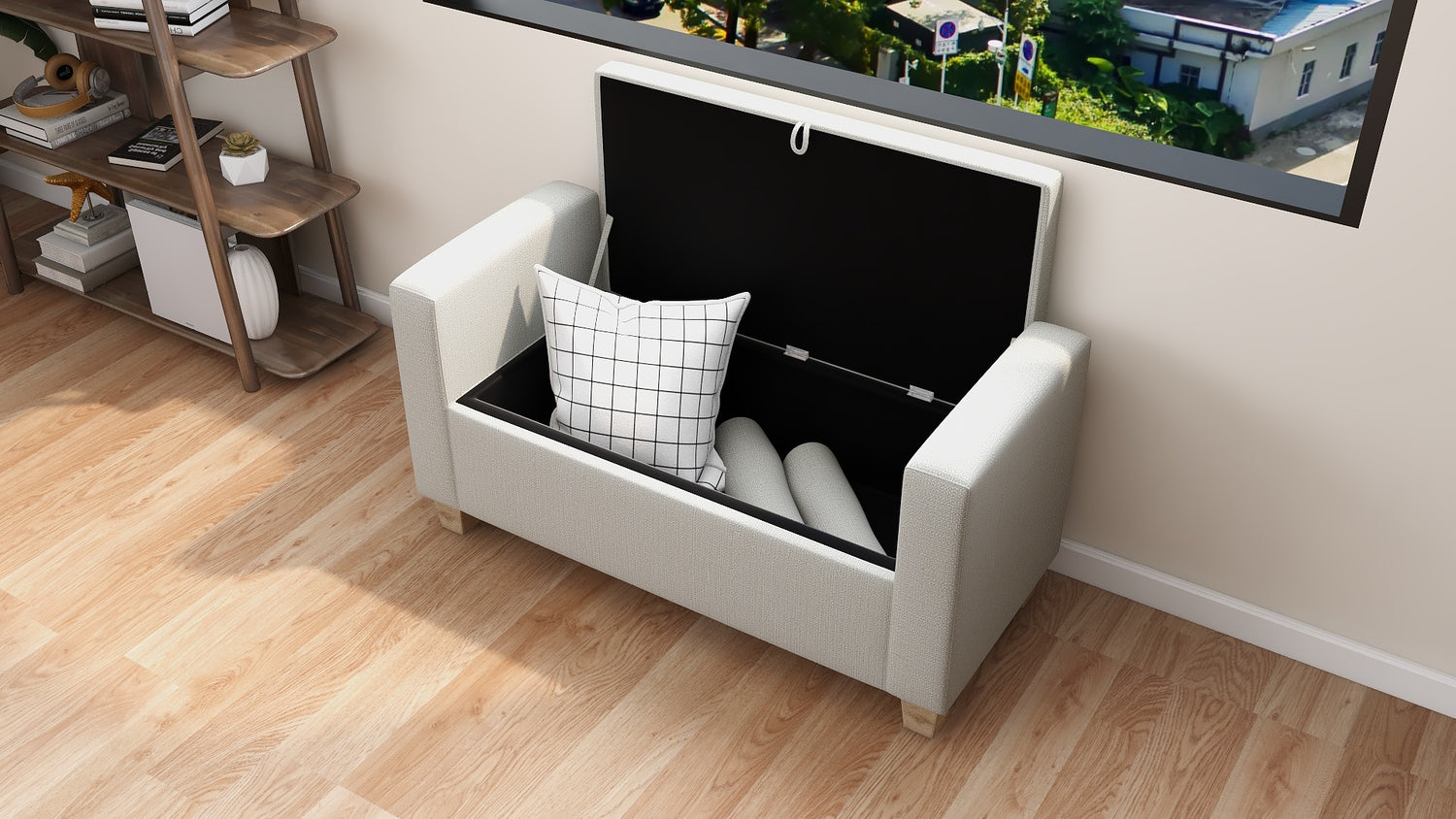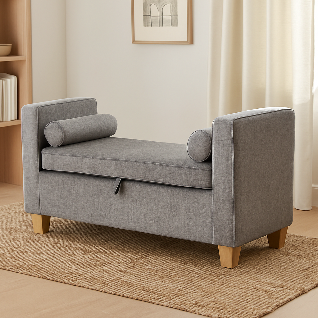 CHARM Fabric Bench with Storage - Dark Gray Fabric is backordered and will ship as soon as it is back in stock.