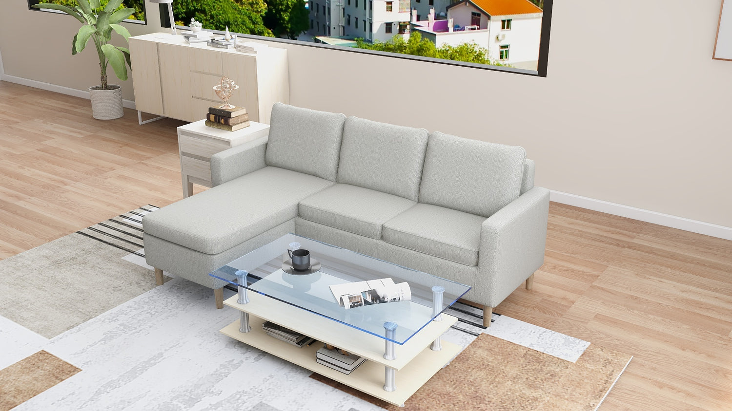 GINO Modern Upholstered L-Shape Fabric Sofa