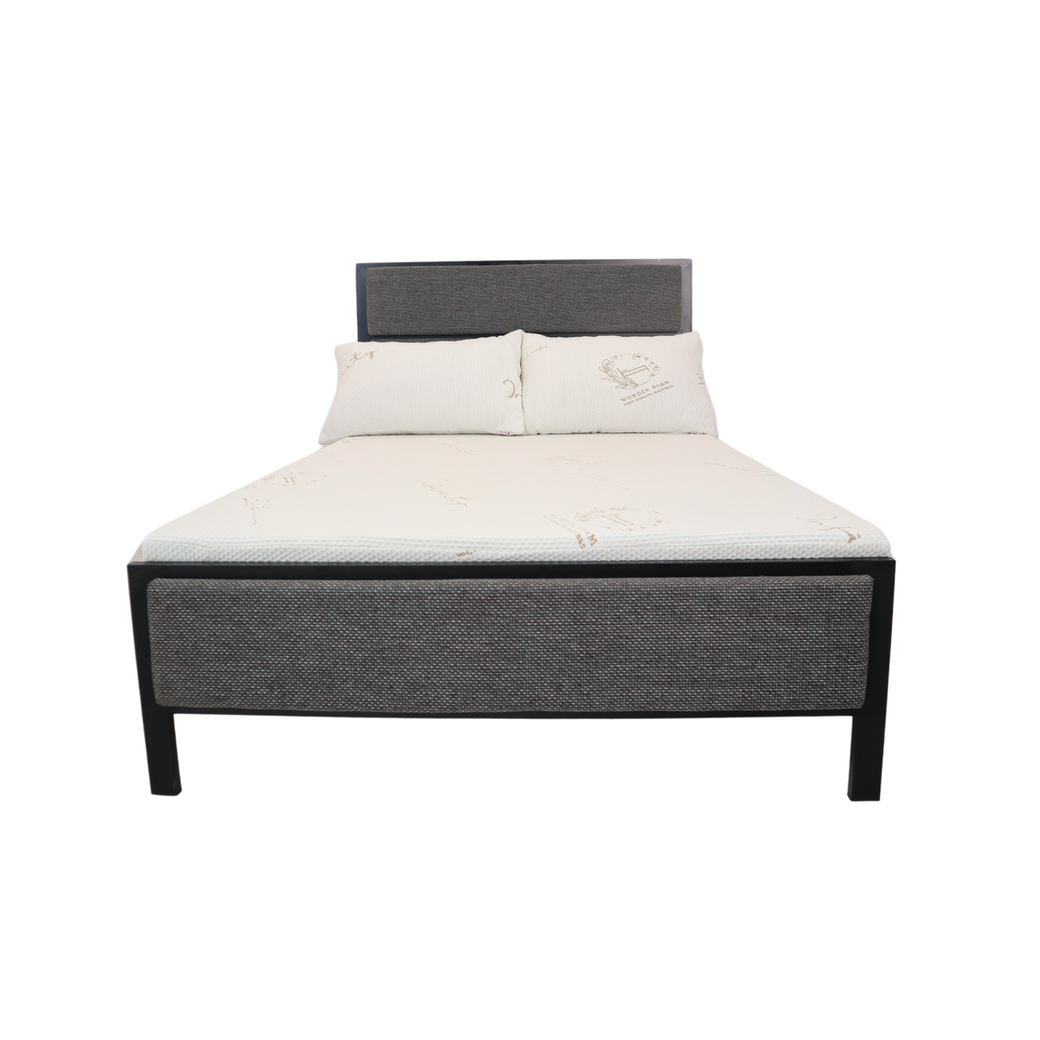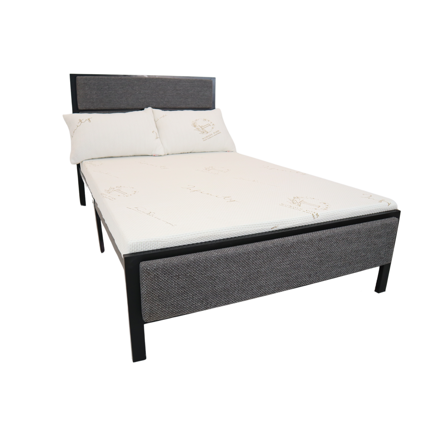 Looking for a more urban look? Hilton v2 is a metal bed frame with upholstered & PVC laminated boards-- fits perfectly in a sleek and trendy bedroom.