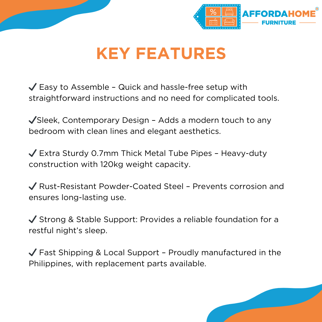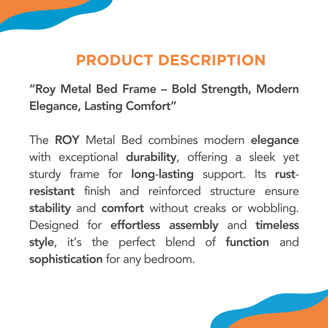 The Roy Bed Frame is a classic and sturdy metal bed frame designed for both functionality and style.