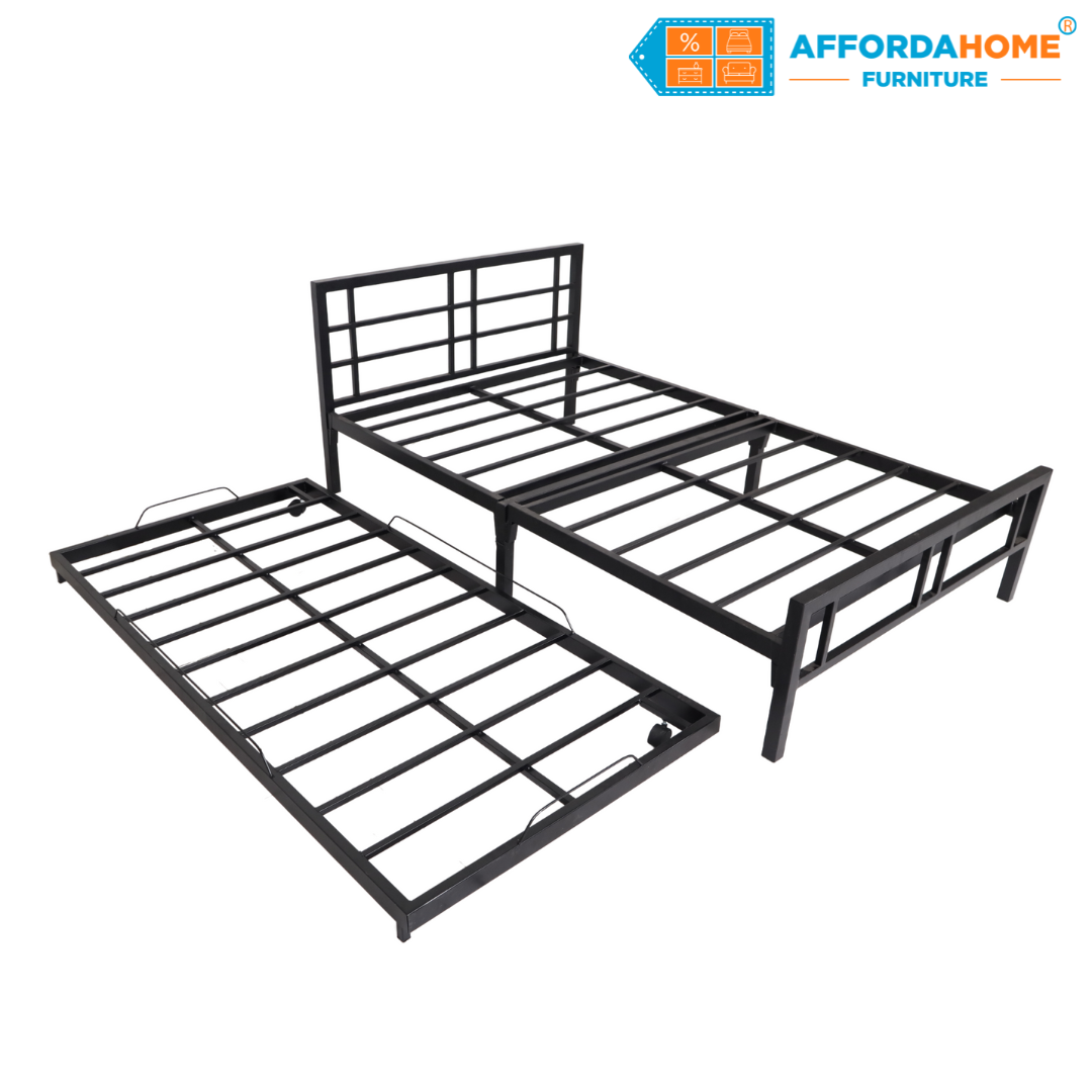 Warren pull-out bed frame is a versatile and functional addition to any bedroom. It features a sturdy metal frame with a sleek and modern design, perfect for contemporary or urban decor. The pull-out trundle bed provides extra sleeping space for guests or allows you to create a cozy space for relaxing and reading. The bed frame has a simple assembly process and incorporates high-quality materials for long-lasting durability. With its convenient and space-saving design, the Warren pull out bed frame is a smart investment for any home.
