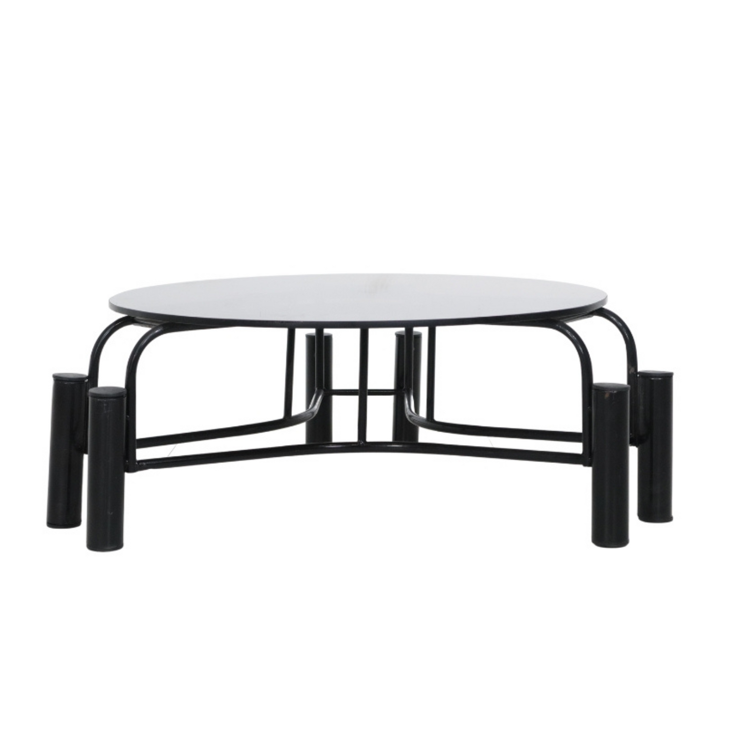 Benny may look like the typical table, but it comes with a bit of quirkiness and personality. The glass surface is supported with premium powder-coated black iron steel pipe, making it a great surface even if it looks like it's missing a leg.