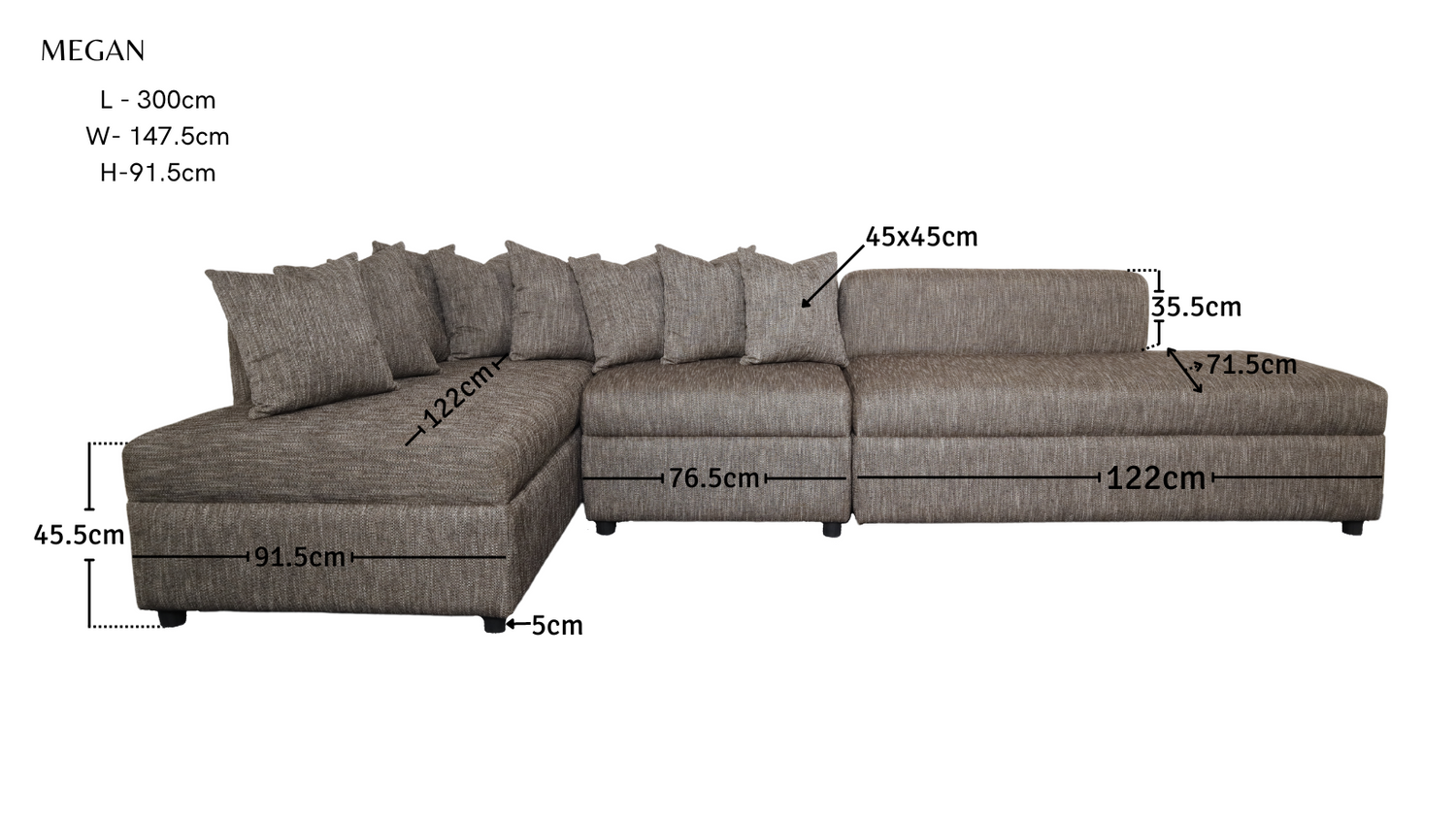 memorable with our high-quality premium yet affordable MEGAN L-Shape Fabric Sofa.