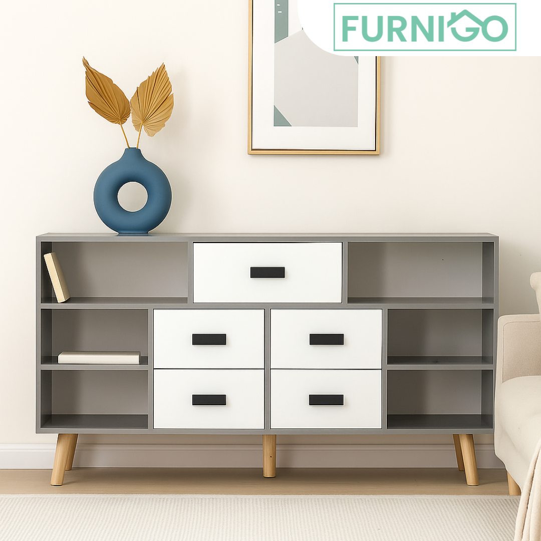 OMEGA Back Cabinet with Drawers - Beech Body /White Door is backordered and will ship as soon as it is back in stock.