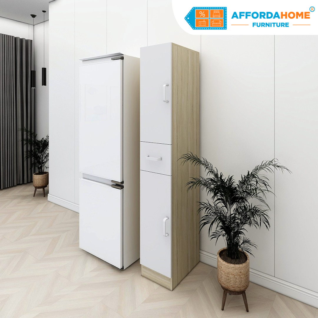 MERCY Kitchen Cabinet ( 2 Door 1 Drawer ) - Sonoma Body / White Door is backordered and will ship as soon as it is back in stock.