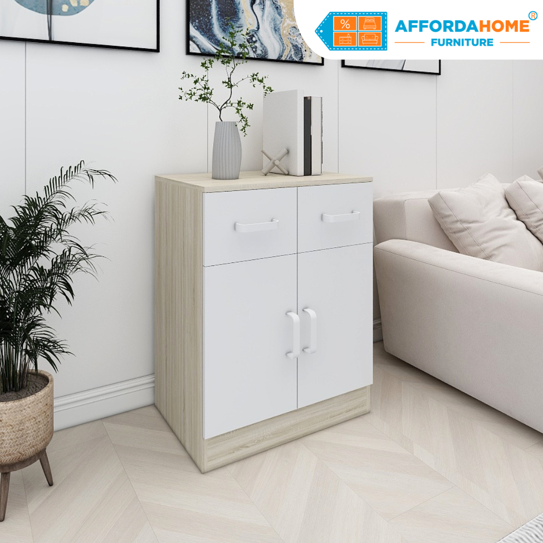 MERCY Buffet Cabinet 2 Drawer - Sonoma Body / White Door is backordered and will ship as soon as it is back in stock.