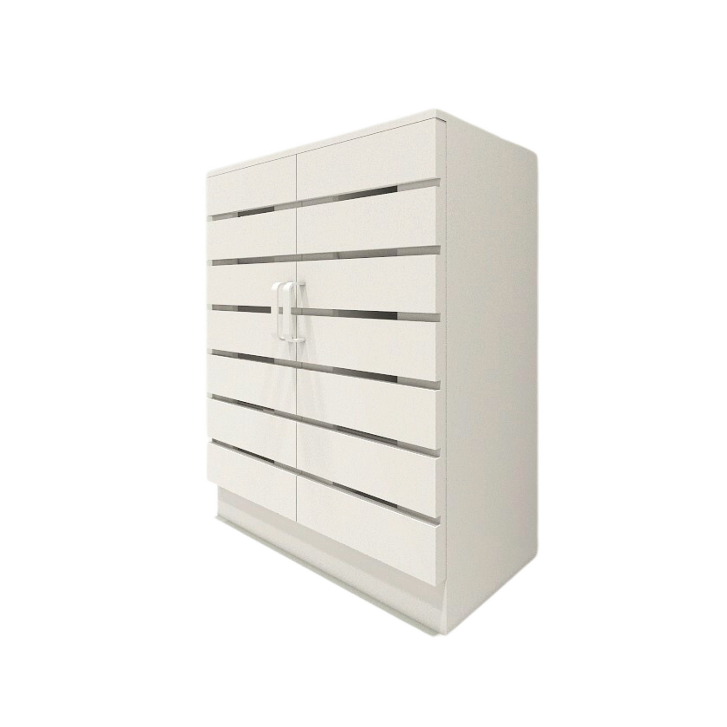 Modern Aesthetic – Clean white finish with horizontal line accents that blend seamlessly with any interior style.
