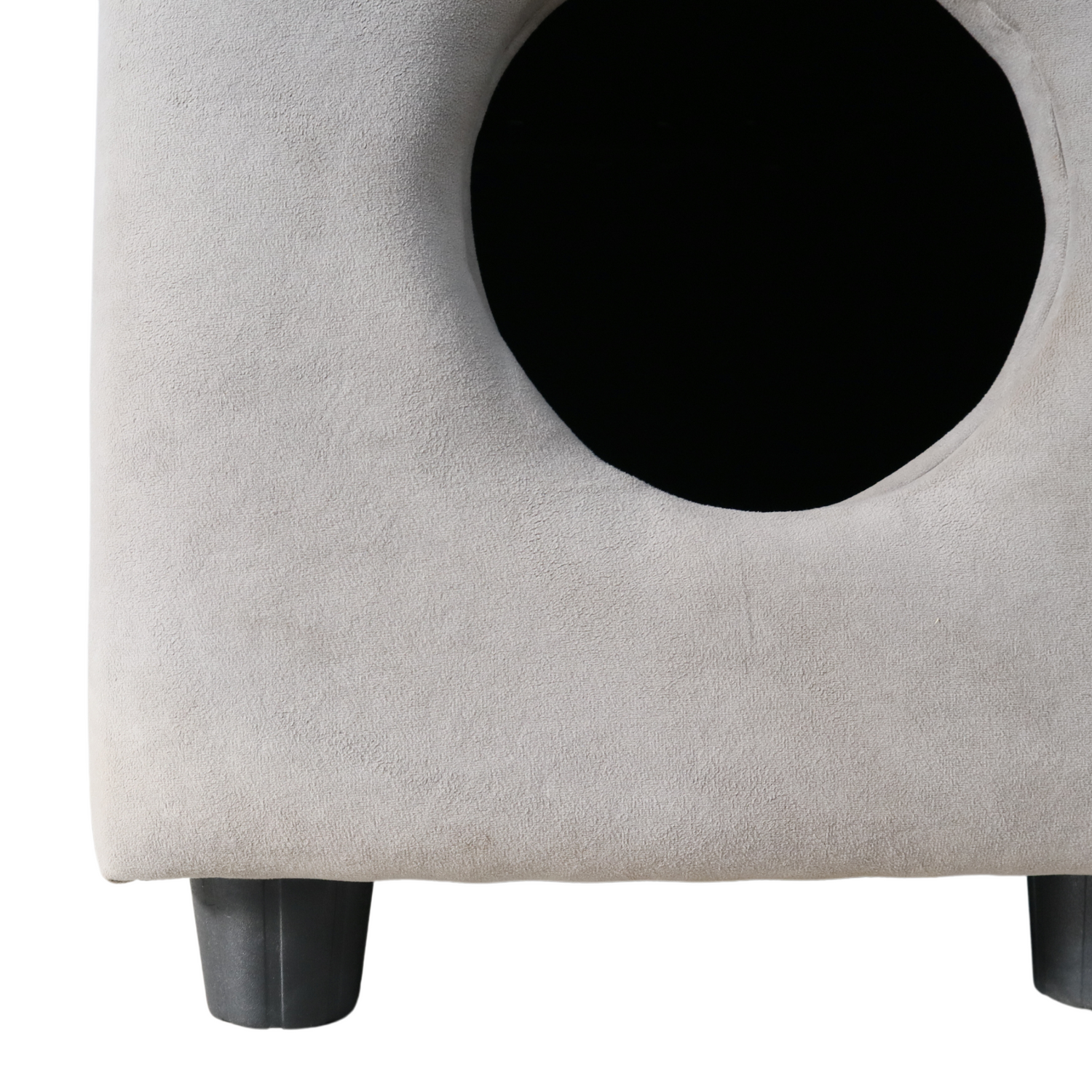 Crafted with a sturdy frame and upholstered in a durable, pet-friendly fabric, the BINGO Ottoman is designed to withstand the test of time and the demands of a cat-lover’s home. The exterior features a minimalist design that blends seamlessly with any decor, whether modern or traditional.