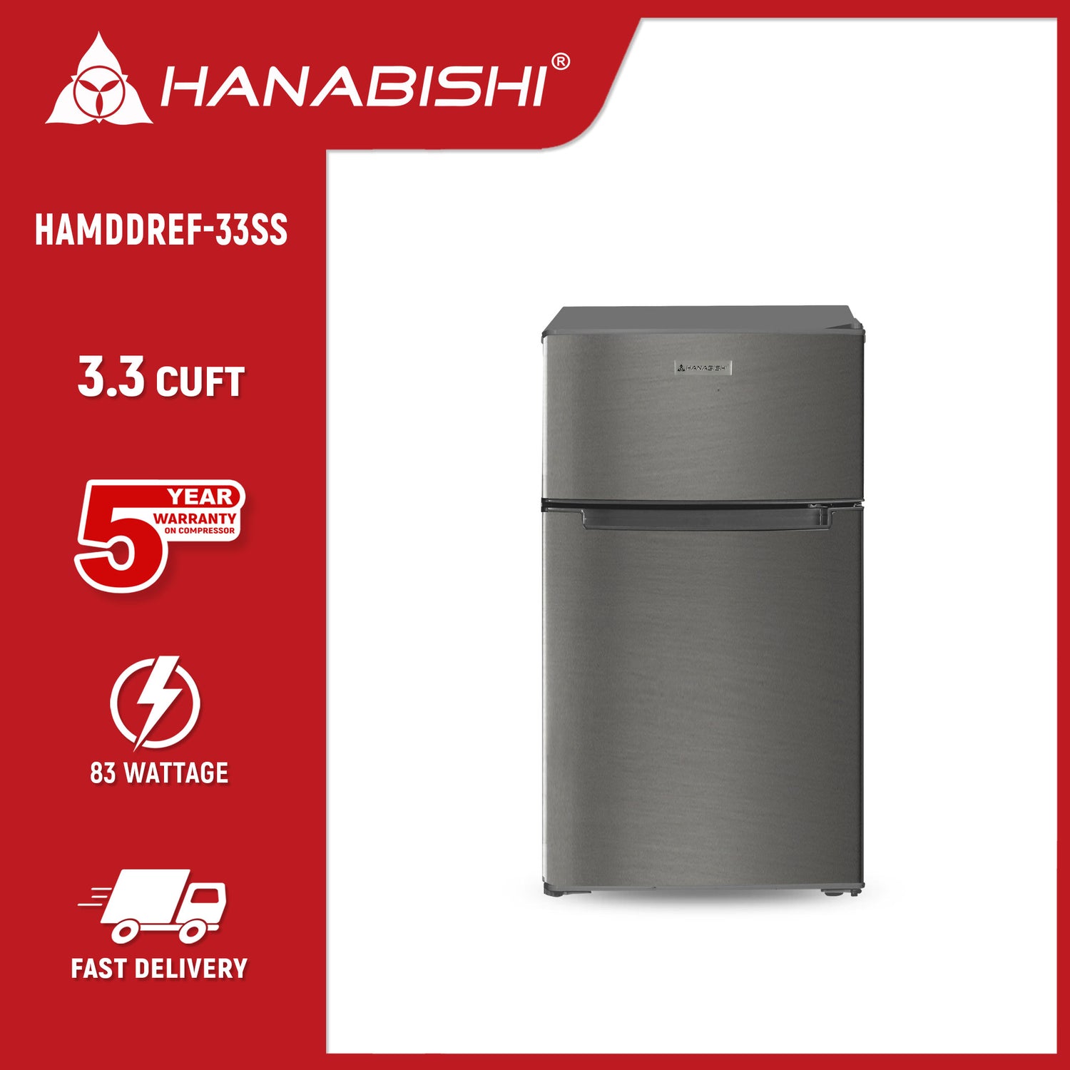 HANABISHI HAMDDREF-33S 3.3 cu.ft. Double Door Refrigerator