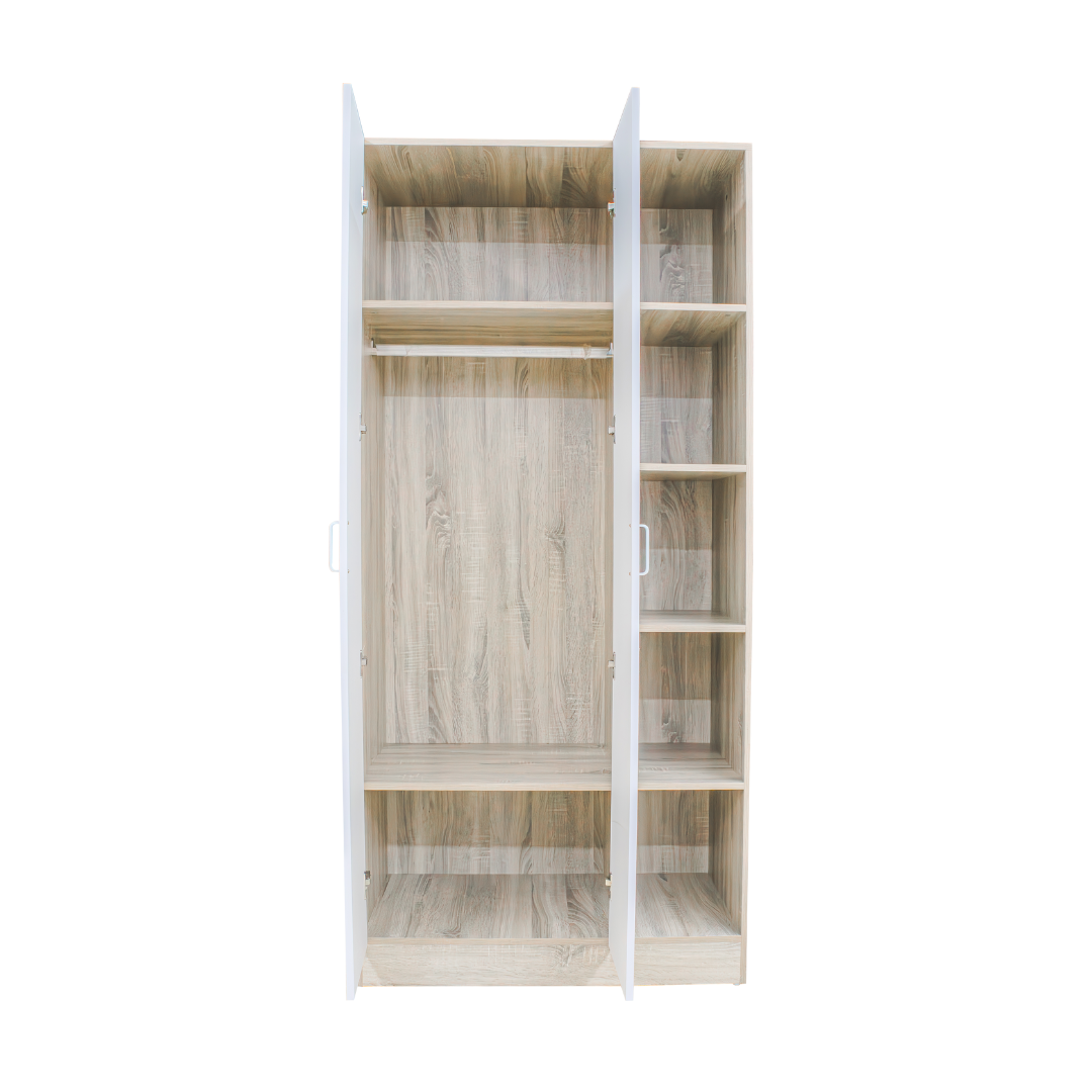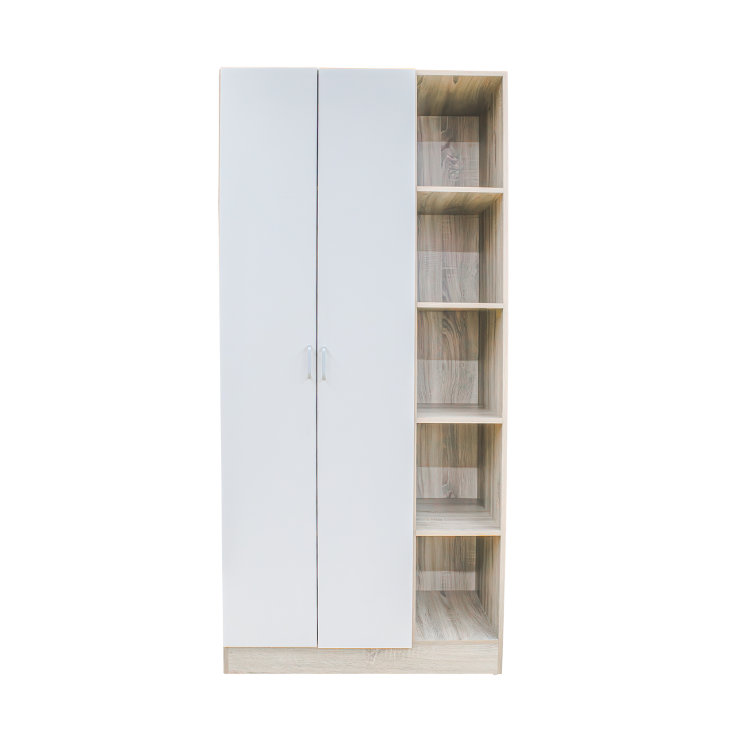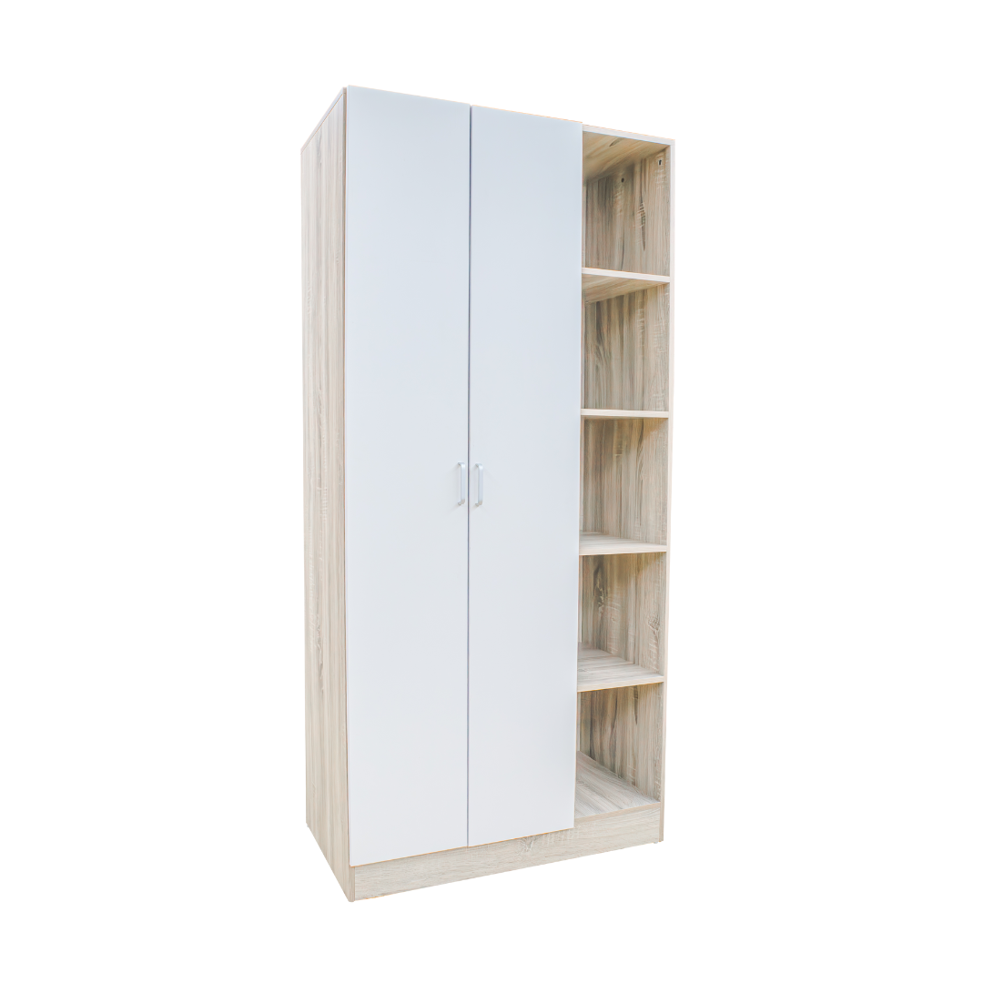 - Dual Functionality: Combines a two-door wardrobe for clothing storage and open shelving for displaying or storing books, décor, or folded items.