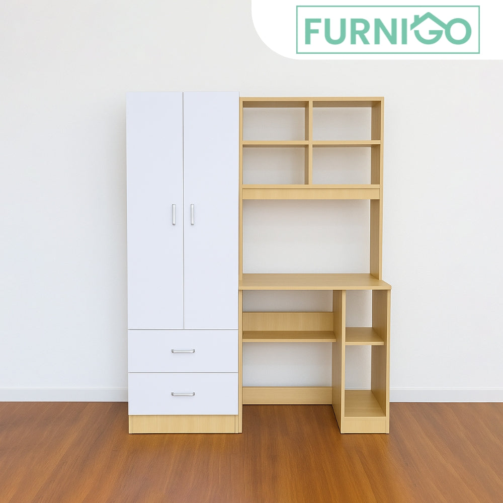This innovative piece combines a spacious study table and a versatile wardrobe, all encapsulated within a sleek, laminated finish that promises durability and ease of maintenance.