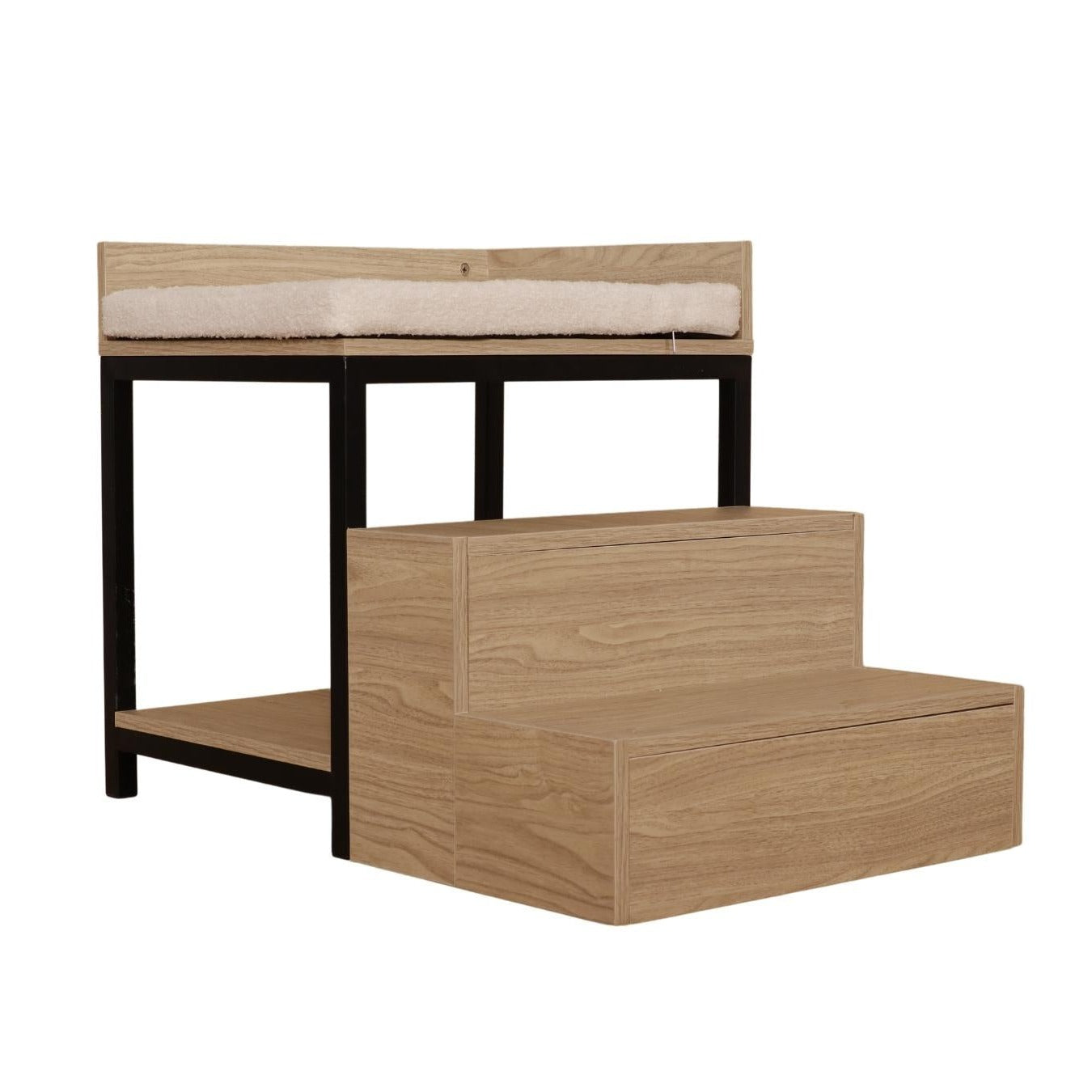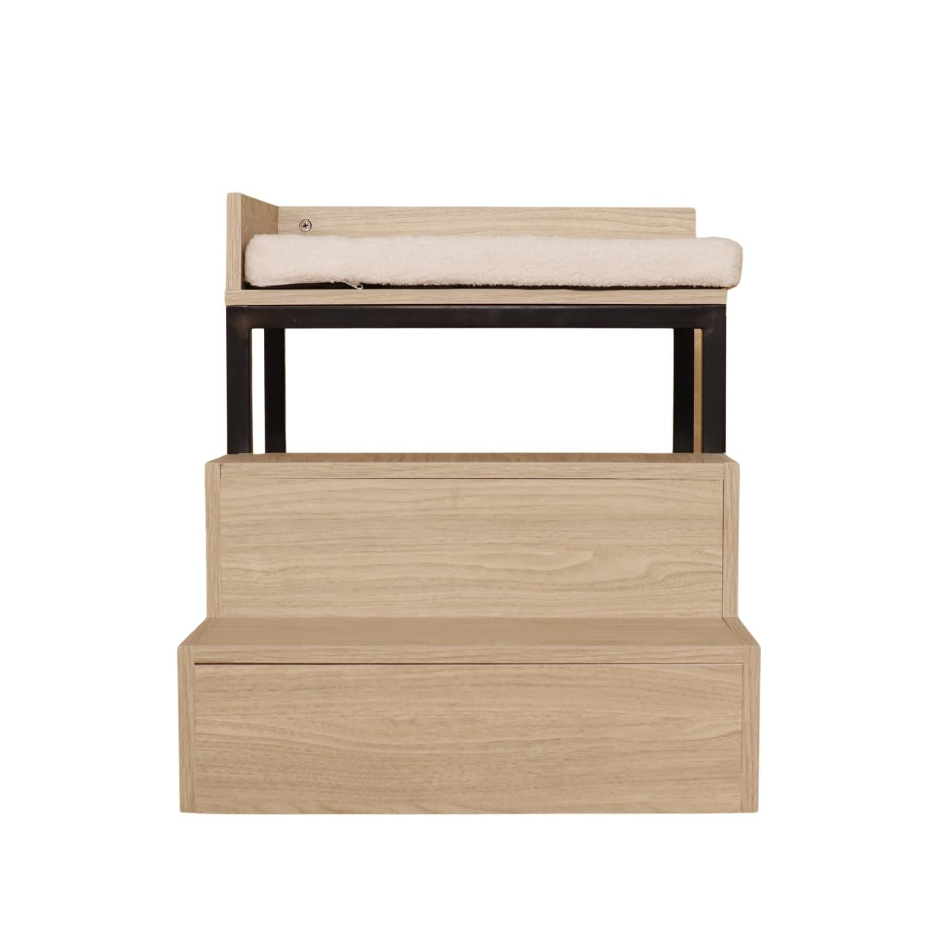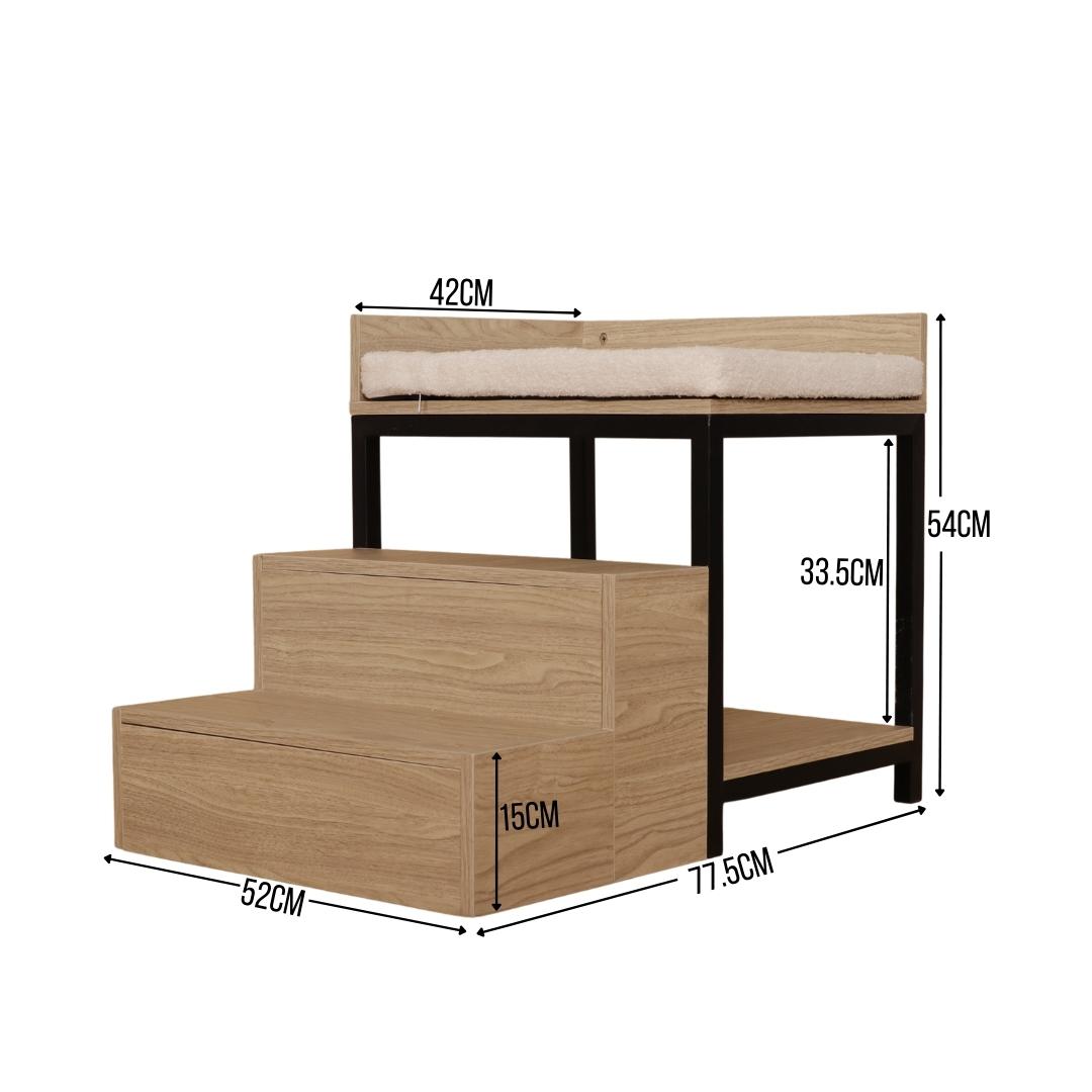 Introducing Malik pet bed with steps - the perfect accessory to accompany your couch or sofa! Milo has steps that effortlessly support your furry friend when climbing up to their bed. With ample space beneath the bed, you can now utilize that space to store decor or other items. Made of laminated wooden boards, Milo is sturdy and adds a touch of style to your living space.