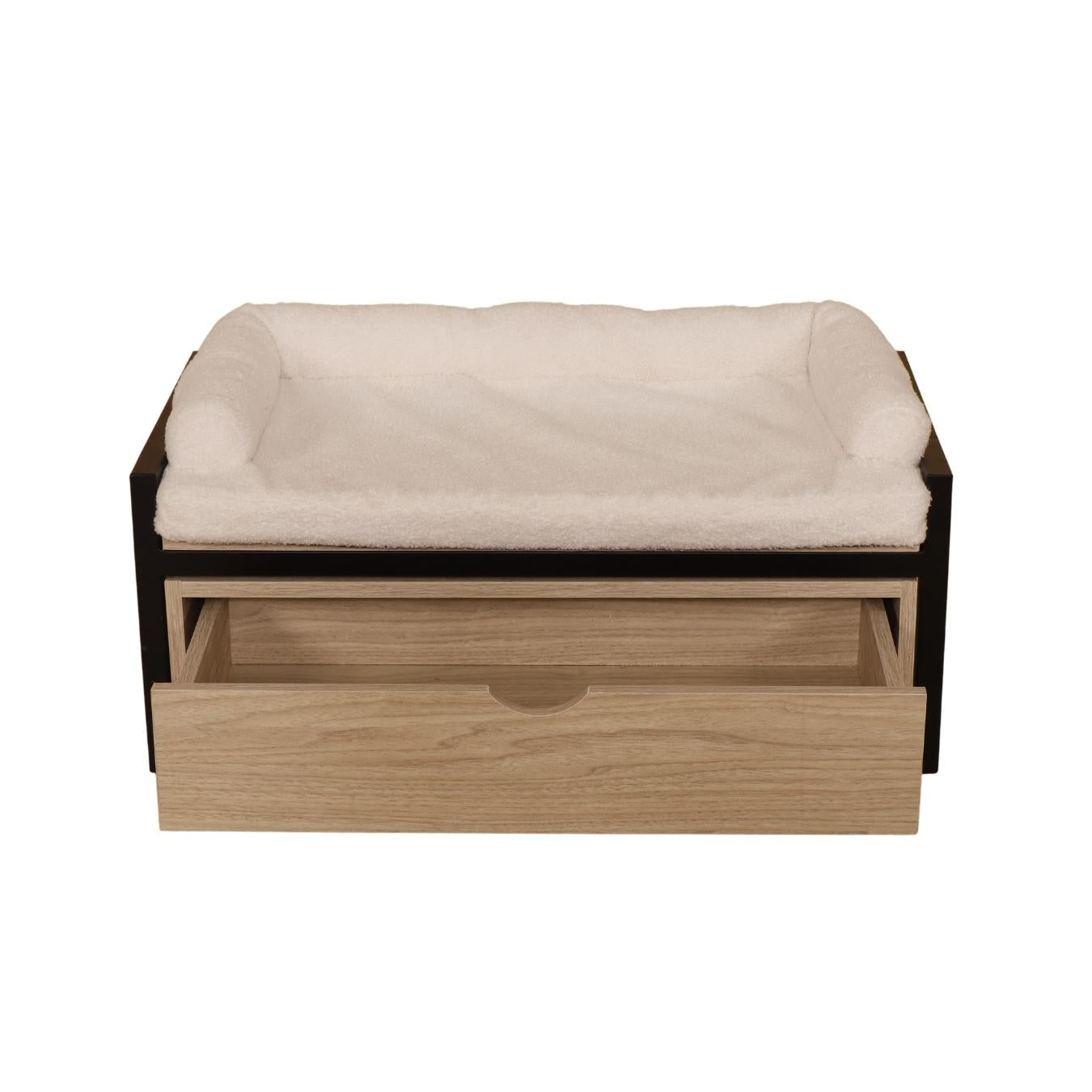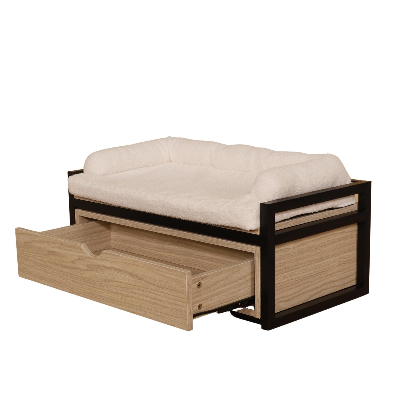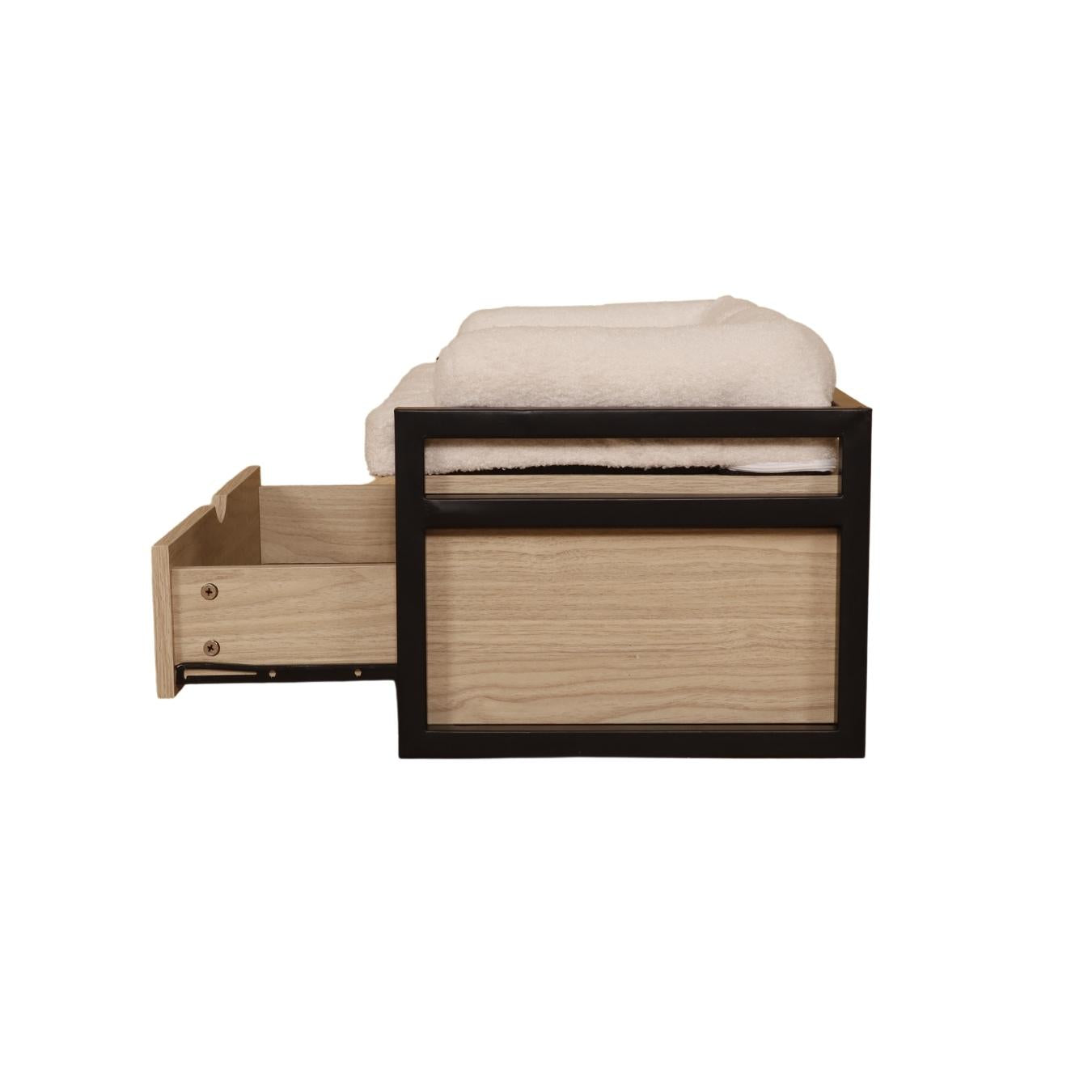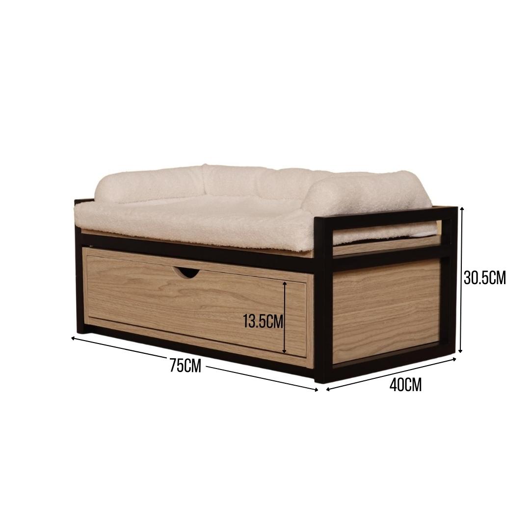 Marc elevated pet bed with storage is the perfect furniture piece for all pet owners! It is a floor storage compartment that comes with a comfortable pet bed on top, allowing your furry friend to relax and rest without being bothered or feeling left out. The storage compartment is perfect for storing all those pet toys, food, and accessories to keep your home tidy and organized.