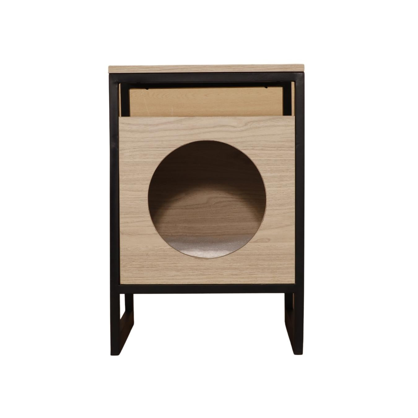 Mojo cat box side table is a multi-functional piece of home decor. The side table offers both aesthetic and practical appeal, with its sleek and modern design perfectly suiting any room in your home. A bonus feature is the pet bed space underneath, providing your furry friend a cozy spot to rest, sleep or hide away. Thanks to this combination of features, Maya pet furniture is a great choice for households that need both functionality and style.