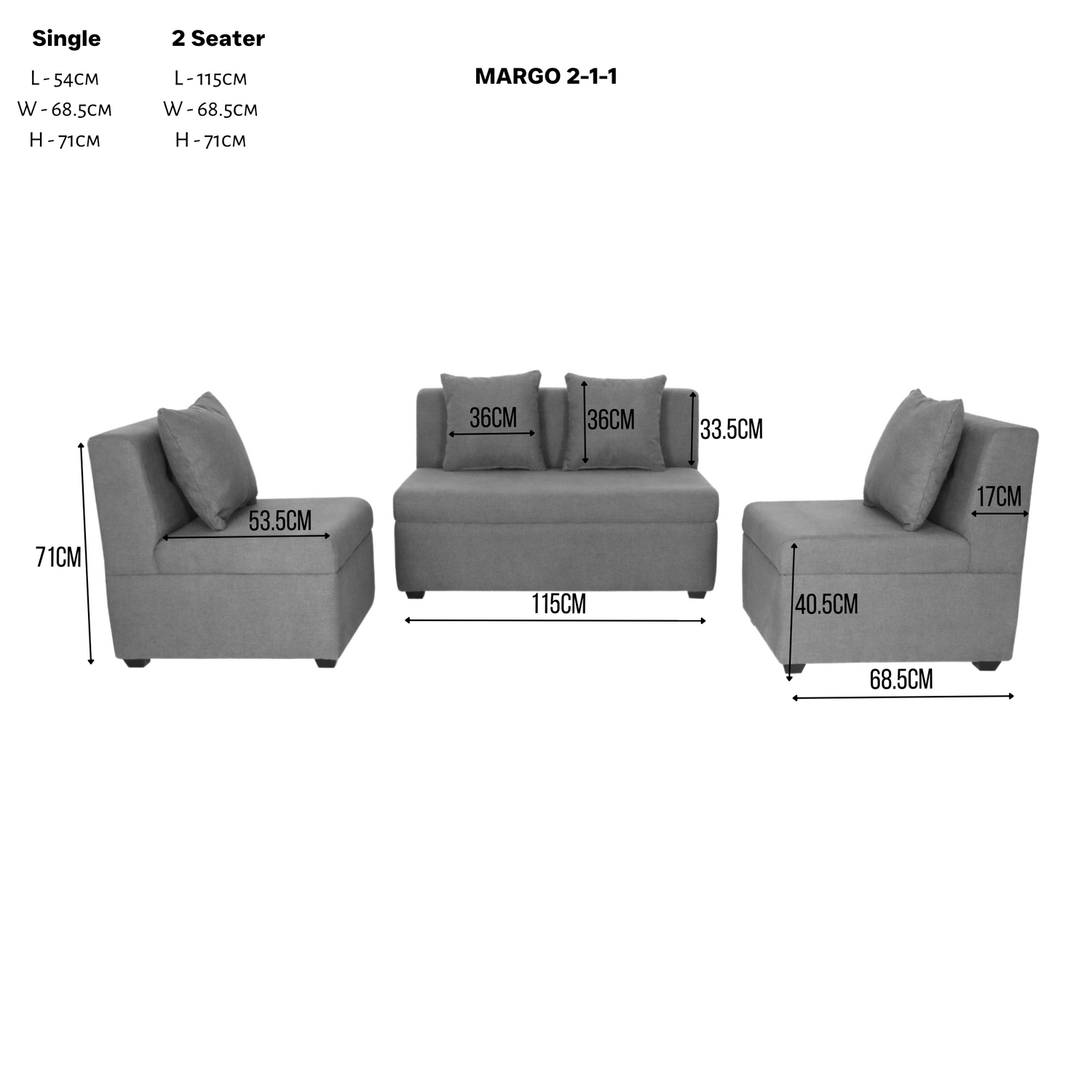 MARGO 2-1-1 Sofa - Light Gray is backordered and will ship as soon as it is back in stock.