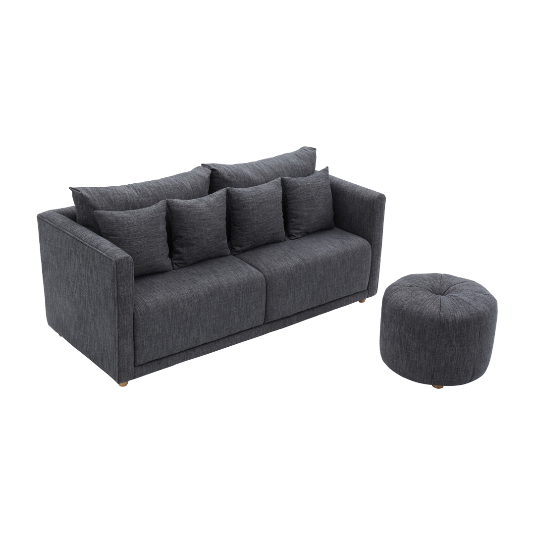 FALLON 2-Seater Fabric Sofa with Ottoman - Dark Gray Fabric is backordered and will ship as soon as it is back in stock.