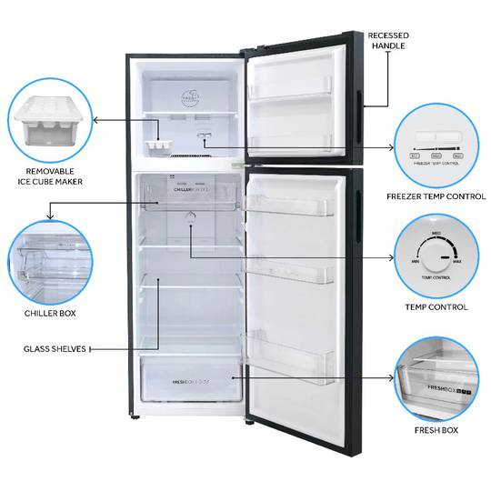 The HAIER HRF-IV290VNU 2 Door Fresh Cooling refrigerator offers efficient dual-door cooling technology designed to preserve the freshness of your food. Its advanced temperature control maintains optimal conditions, reducing spoilage and ensuring long-lasting quality. With a spacious interior and user-friendly design, it fits seamlessly into modern kitchens, combining functionality and reliability for expert-level food storage. Ideal for households seeking dependable refrigeration performance.