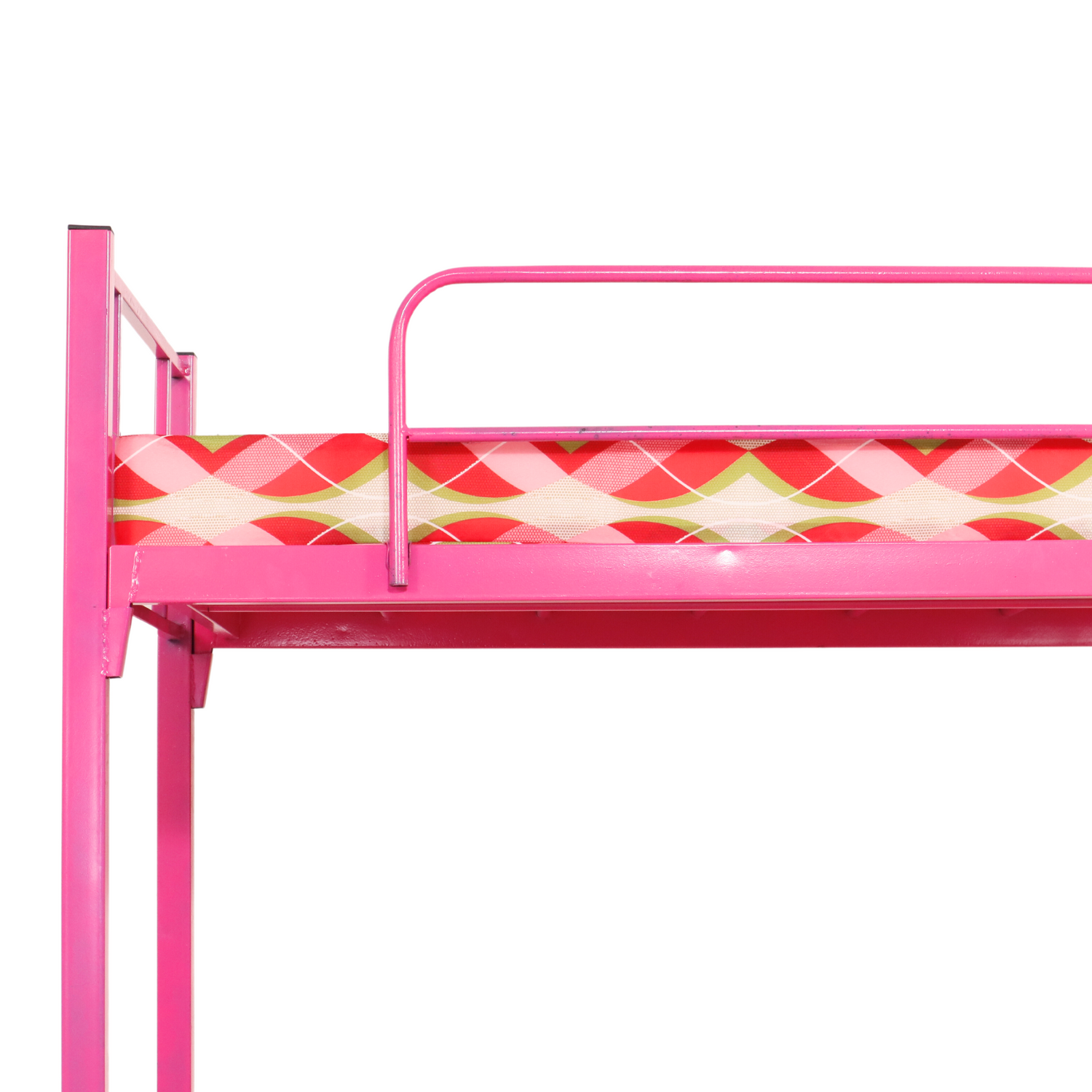 Pia Kiddie Double Deck Bed is a fun and functional bed designed for kids. It features a sturdy metal frame that can support up to two twin mattresses, making it perfect for siblings or sleepovers. The bed comes with a ladder for easy access to the top bunk and safety rails to prevent falls. This bed is not only practical but also stylish, with its sleek and modern design that is sure to complement any decor. It is available in various colors to match your child's preference. As an added bonus, a free mattress is included with each purchase, so you don't have to worry about finding the right size and type of mattress. The Pia Kiddie Double Deck Bed is easy to assemble, and its compact size makes it ideal for small bedrooms or shared spaces. It is designed to provide a safe and comfortable sleeping environment for your little ones, so you can rest easy knowing that they are sleeping soundly and securely.