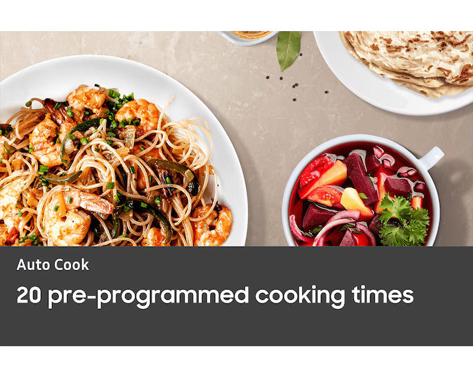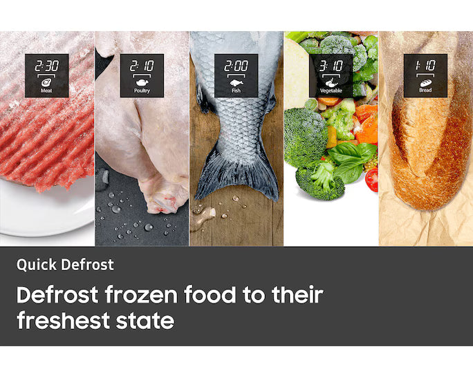 The SAMSUNG Solo Microwave Oven Quick Defrost 23L offers precise and efficient cooking with its spacious 23-liter capacity. Designed for versatility, it features a quick defrost function that saves time while ensuring even thawing of frozen foods. This user-friendly appliance combines reliable performance with sleek design, making it an essential addition to any modern kitchen focused on convenience and efficiency.